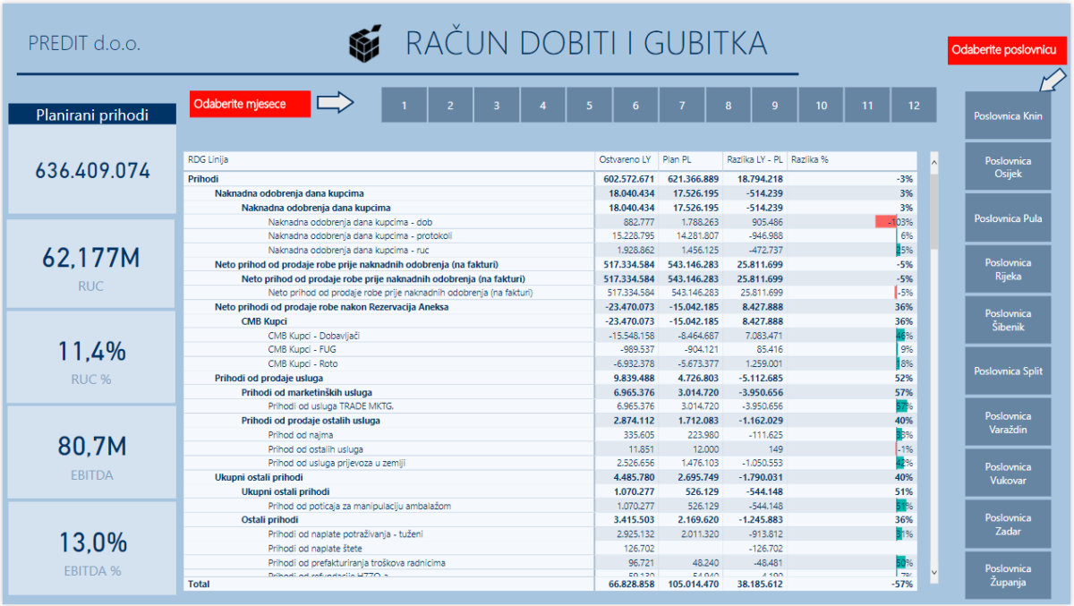 Mogućnost pregleda po organizacijskim jedinicama i spuštanje do razine mjeseca.